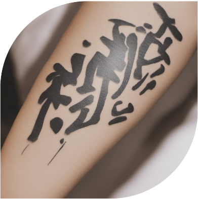 毛筆風の漢字のタトゥーデザインで和と想いを掛け合わせデザインを制作します。